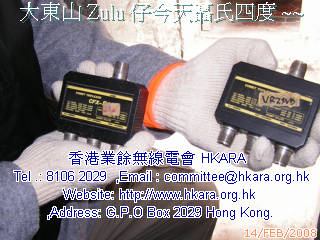 今天(14Feb.08)山上戶外約四度乾燥,室內六~八度,風勢清勁。我們抗寒食 、食 、食。此行主要任務:檢查VR2Z中繼站 2m、70 cm & 6m 中繼器、天線性能、更換主電源線、功能控制選擇器、改自動恢復器線路及尋找接收噪聲來源等。