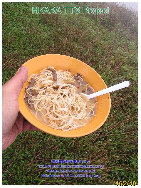站內室溫最低約攝氏 5 度,曾升至 7度,濕度近 100 %,我們靠元朗蝦子麵加麻辣料、芝麻湯圓支撐 : ) ;令人有點意外是山路途中溫度有時還比山上低,估計因冷空氣正向下降之故。